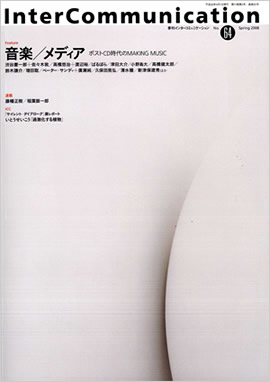 NTT出版より2月27日発売の「季刊 Inter Communication」最新号において、 表紙と巻頭の10ページにわたって新しい作品を発表しています。 季刊 Inter Communication / No.64 2008 spring 特 集 音楽 / メディア 発売日 2月27日 価 格 1,400円 問合せ NTT出版(TEL:03-5434-1010) (目次より) ◆サウンド・フォトグラフィー 新津保建秀 Binaural-Scape.2001-2007 渋谷慶一郎 ベルリンのfilmachine ◆対談 渋谷慶一郎+佐々木敦 ゼロ年代の「音響」と「音楽」をめぐって 高橋悠治+渡辺裕 世界音楽と反システム音楽 ◆テクノロジーへの視点 高橋健太郎 検索 制作ソフトウェア 津田大介 携帯オーディオ SNS 小野島大 音楽再生 ◆テキスト 佐々木敦 MAXIMAL MUSIC(承前) 津田大介 未来の音楽ビジネス 鈴木謙介 同期するメッセージ、空虚への呼びかけ 増田聡 「作曲の時代」と初音ミク 久保田晃弘 生成技術時代の音楽作品 プログラミング言語から計算する宇宙へ 清水穣 セリー、フォルメル、メディア シュトックハウゼンの《ヘルコプター弦楽四重奏曲》 ペーター・サンディ+廣瀬純 ハイウェイ・ディアフォニック ペーター・サンディは何を聴くのか? ◆アーカイヴ 薮崎今日子 エレクトロニック・ミュージック・レーベル・ガイド 「音響」はどこに存在しているか ばるぼら 年表・21世紀の音楽/メディア史 1995-2008 ◆連載 パラレル・リアリティ13 藤幡正樹 視線と発見 片隅の啓蒙17 稲葉振一郎 水槽の中の脳は〈よき全体主義〉の夢を見るか